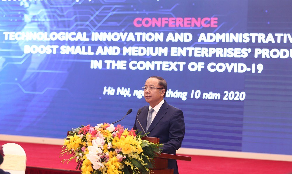 Ông Tô Hoài Nam - Phó Chủ tịch Thường trực kiêm Tổng Thư ký Hiệp hội DNVVN Việt Nam cũng khẳng định vai trò của việc ứng dụng KH,CN, ĐMST trong thúc đẩy năng suất, chất lượng sản phẩm. Ông cho rằng, doanh nghiệp đang nhìn nhận vai trò của KH&CN rất khác so với trước đây. Họ không những thấy đó là sự cần thiết mà còn là cơ hội hướng tới thành công. Đồng thời đánh giá cao nỗ lực của Bộ KH&CN trong việc hỗ trợ doanh nghiệp cải tiến năng suất, chất lượng nhằm nâng cao năng lực cạnh tranh trên thị trường thông qua việc triển khai thành công chương trình 712 về Nâng cao năng suất, chất lượng sản phẩm, hàng hóa Quốc gia đến năm 2020 và việc cho ra đời bộ công cụ VIPA với 64 chỉ số đánh giá mức độ sẵn sàng của doanh nghiệp trong chuyển đổi số.