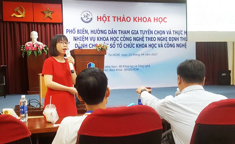 Ngày 23/4/2021 tại TP. Hồ Chí Minh, Cục Công tác phía Nam, Vụ Hợp tác quốc tế Bộ KH&CN phối hợp với Đại học Bách khoa TP.HCM tổ chức hội thảo phổ biến, hướng dẫn tham gia tuyển chọn và thực hiện nhiệm vụ KH&CN theo Nghị định thư dành cho tổ chức KH&CN. Hội thảo đã giành được sự quan tâm của nhiều các nhân, tổ chức KH&CN, trường đại học tại khu vực phía Nam.