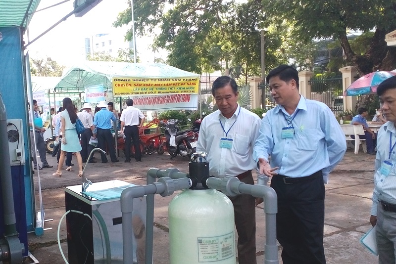 (Ths. Trương Hoàng Phương, Phó giám đốc Sở KH&CN Cần Thơ giới thiệu hệ thống xử lọc nước của Trung tâm ứng dụng tiến bộ KH&CN Cần Thơ)