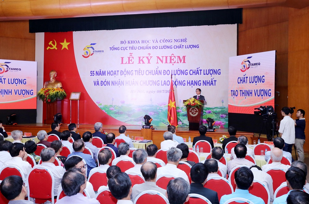 Thay mặt Đảng, Nhà nước và Chính phủ, Phó Thủ tướng Vũ Đức Đam cũng gửi lời chúc mừng, lời tri ân về những đóng góp các thế hệ cán bộ, nhân viên, người lao động của ngành TĐC đối với sự nghiệp phát triển khoa học và công tác TĐC trong suốt 55 năm qua. Phó Thủ tướng đặc biệt nhấn mạnh các yêu cầu đặt ra phải rất cụ thể, thiết thực như Bộ KH&CN đã xác định 81 tiêu chí cụ thể trong chỉ số năng lực sáng tạo quốc gia cho từng bộ ngành. Nhờ vậy chỉ số này đã tăng 12 bậc, xếp thứ 47 trên thế giới trong năm 2017.