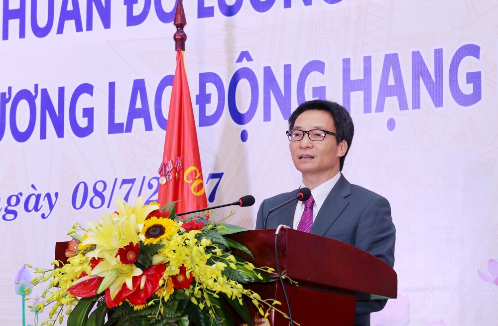Thay mặt lãnh đạo Đảng, Nhà nước, Phó Thủ tướng Vũ Đức Đam trao Huân chương Lao động hạng Nhất cho Tổng cục TĐC