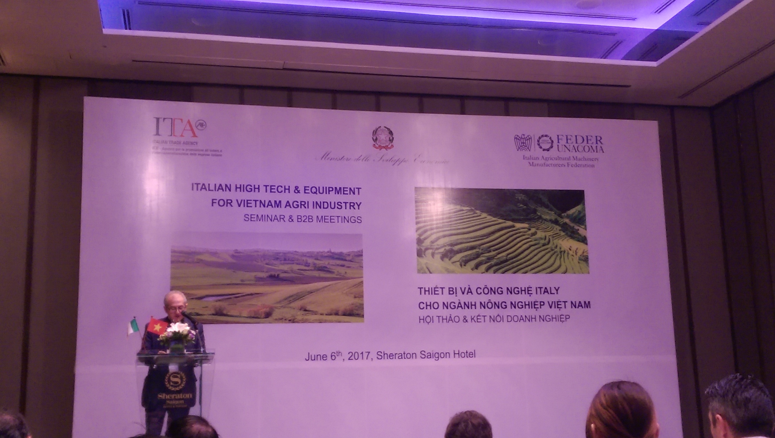Ngày 6/6/2017 tại Tp. Hồ Chí Minh phòng Lãnh sự Ý phối hợp với Cục Xúc tiến thương mại Việt Nam đã tổ chức hội thảo “ Thiết bị và Công nghệ Ý cho ngành nông nghiệp Việt Nam”