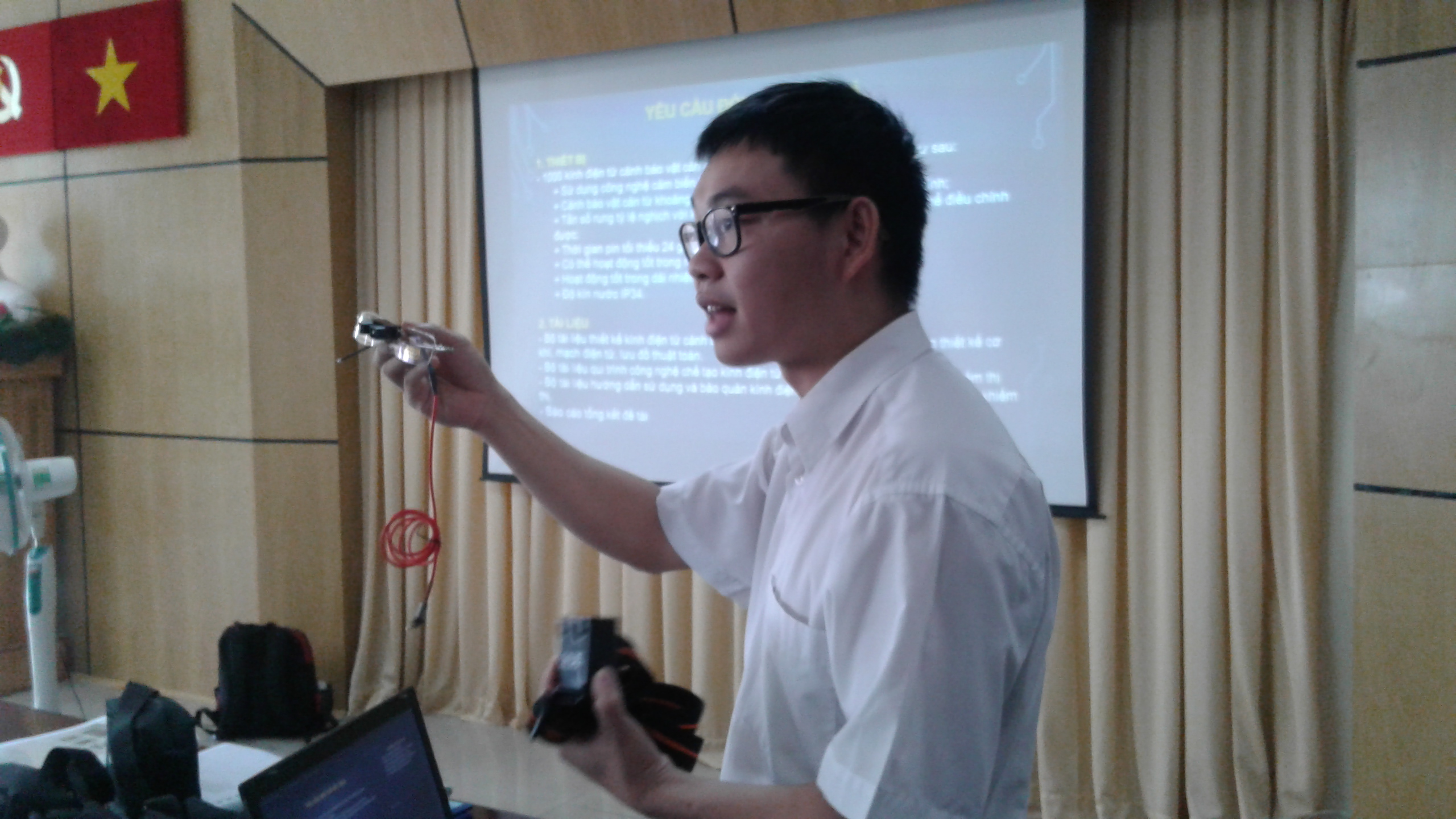 1000 mẫu kính đã được chế tạo thử nghiệm thành công, là sản phẩm của đề tài độc lập cấp quốc gia “Nghiên cứu, hoàn thiện, thiết kế chế tạo mẫu kính điện tử cảnh báo vật cản cho người khiếm thị” do TS. Nguyễn Bá Hải (Trường Đại học Sư phạm kỹ thuật TPHCM) làm chủ nhiệm.