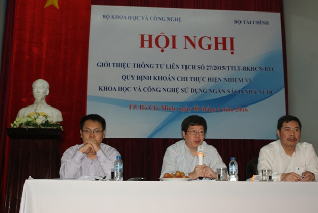 Ngày 8/4/2016 Cục Công tác phía Nam, Bộ Khoa học và Công nghệ (KH&CN) phối hợp với Vụ Kế Hoạch -Tổng Hợp (KH-TH), tổ chức buổi Hội nghị giới thiệu Thông tư liên tịch số 27/2015/TTLT-BKHCN-BTC Quy định khoán chi thực hiện nhiệm vụ KH&CN sử dụng Ngân sách Nhà nước và hướng dẫn công tác xây dựng kế hoạch hoạt động KH&CN năm 2017.