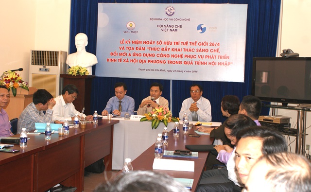 Ngày 22/4/2016 tại Tp HCM, Cục Công tác phía Nam Bộ Khoa học và Công nghệ đã phối hợp Văn phòng đại diện Cục Sở hữu trí tuệ và Hội Sáng chế Việt Nam tổ chức Lễ kỷ niệm nhân kỷ niệm ngày Sở hữu trí tuệ thế giới, đồng thời tổ chức tọa đàm về việc thúc đẩy khai thác sáng chế, đổi mới và ứng dụng công nghệ phục vụ phát triển kinh tế xã hội địa phương trong quá trình hội nhập.