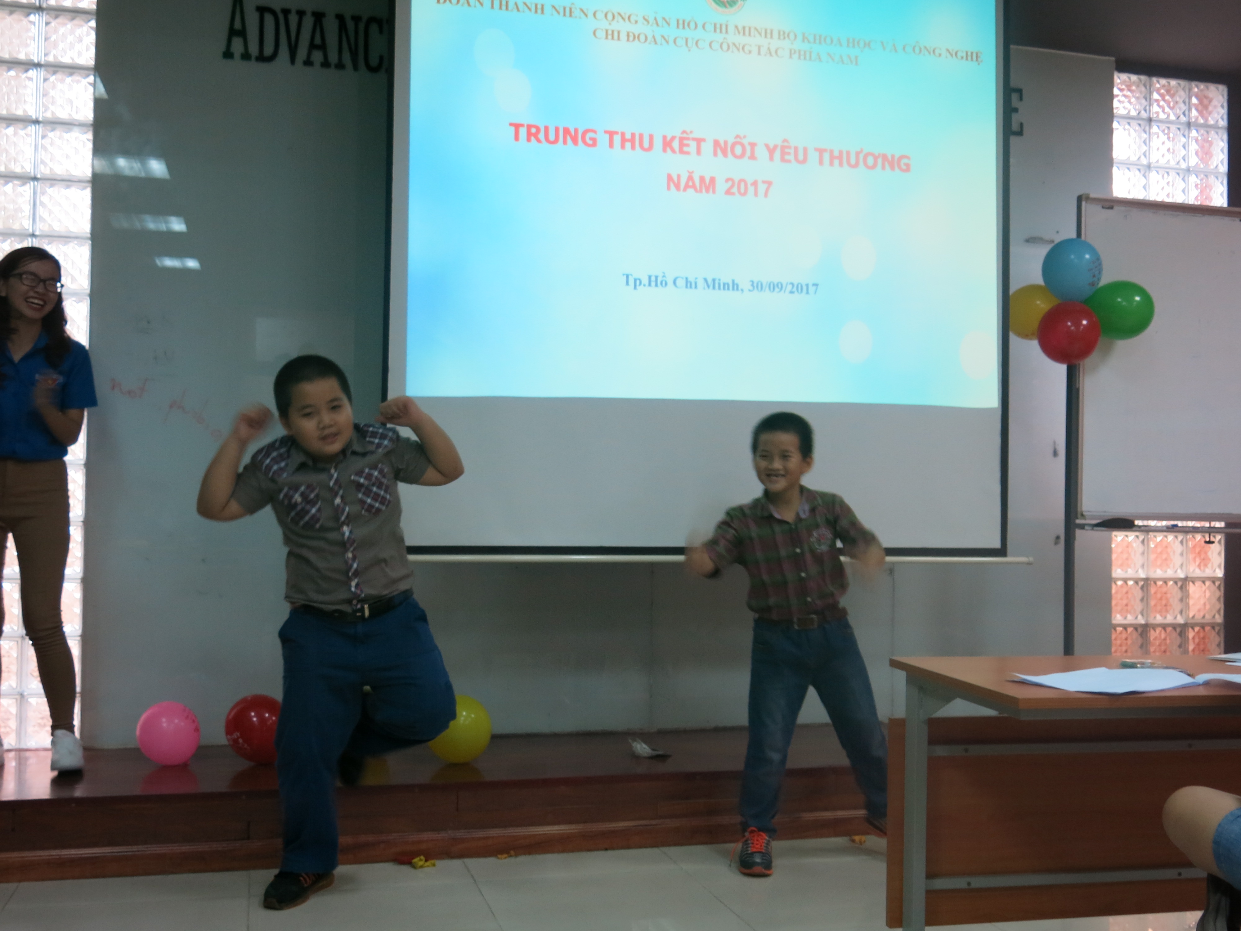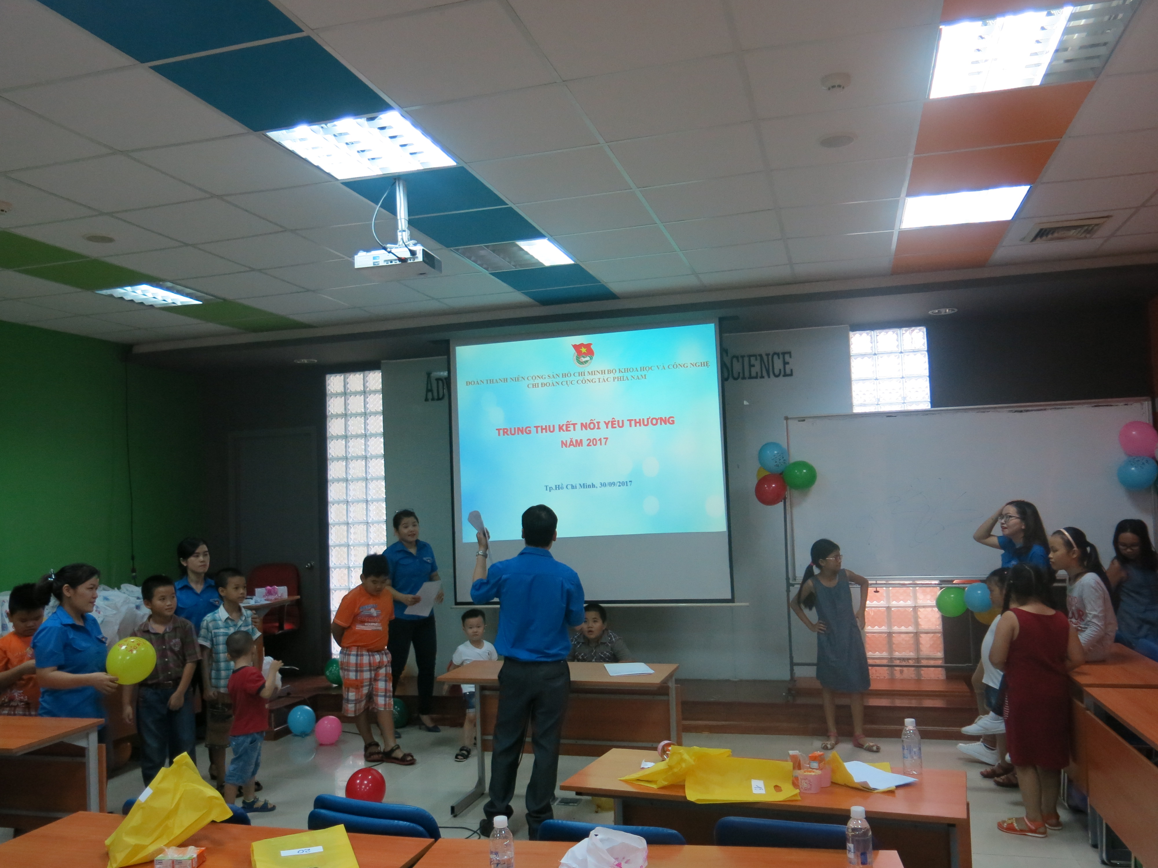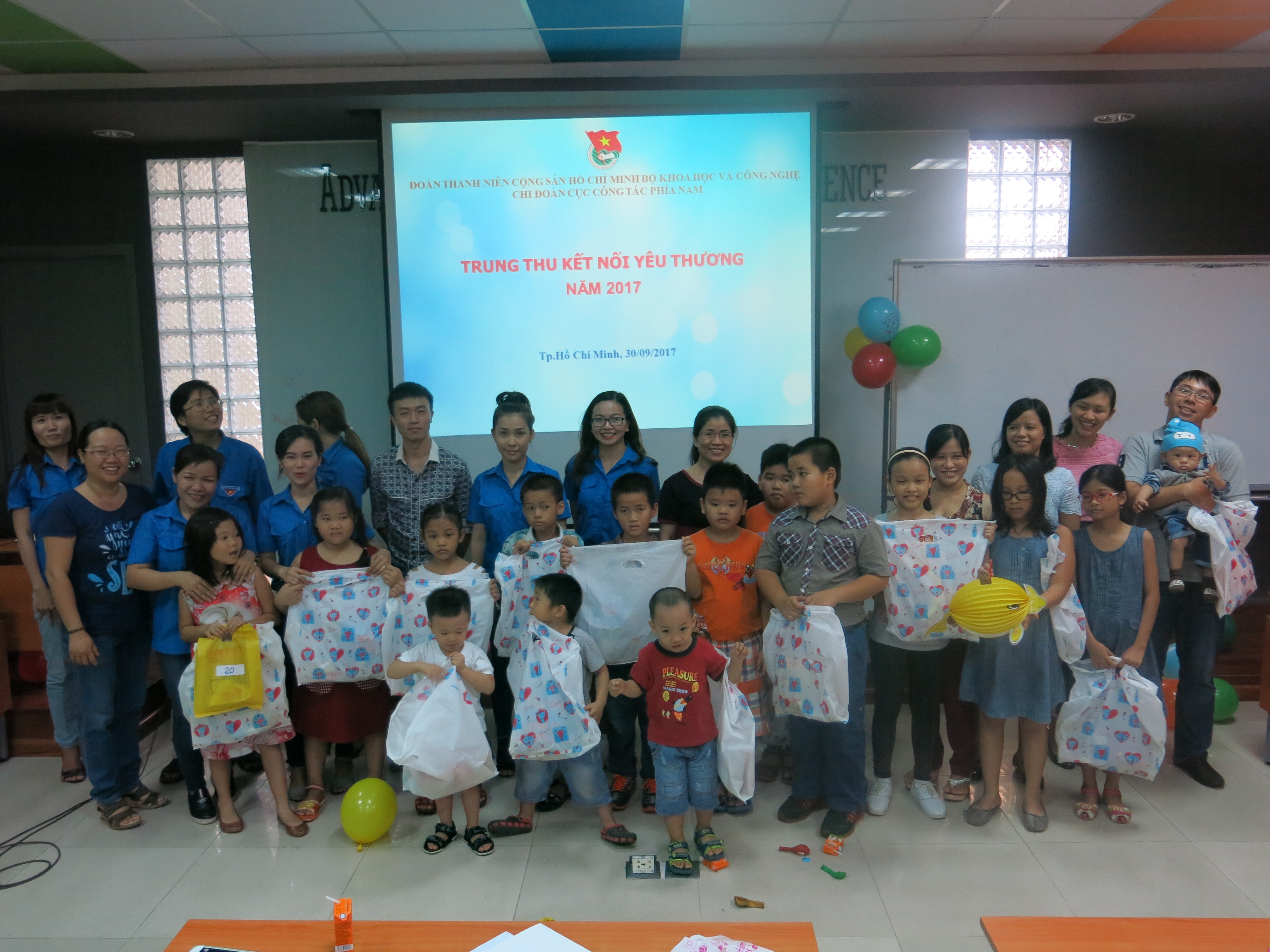 Ngày 30/9/2017, hòa trong không khí rộn ràng của Tết trung thu, nhằm tạo sân chơi bổ ích, lý thú và cơ hội gặp gỡ, chia sẻ cho các cháu thiếu nhi, Chi Đoàn Cục Công tác phía Nam tổ chứcchương trình“Trung thu kết nối yêu thương” cho các cháu là con các CBCNV đến từ các đơn vị trực thuộc Bộ Khoa học và Công nghệ như Cục Công tác phía Năm, Vp đại diện Cục Sở hữu trí tuệ, Chi Nhánh Viện Ứng dụng, Báo Khoa học học & Phát triển, Văn phòng Công nhận chất lượng.