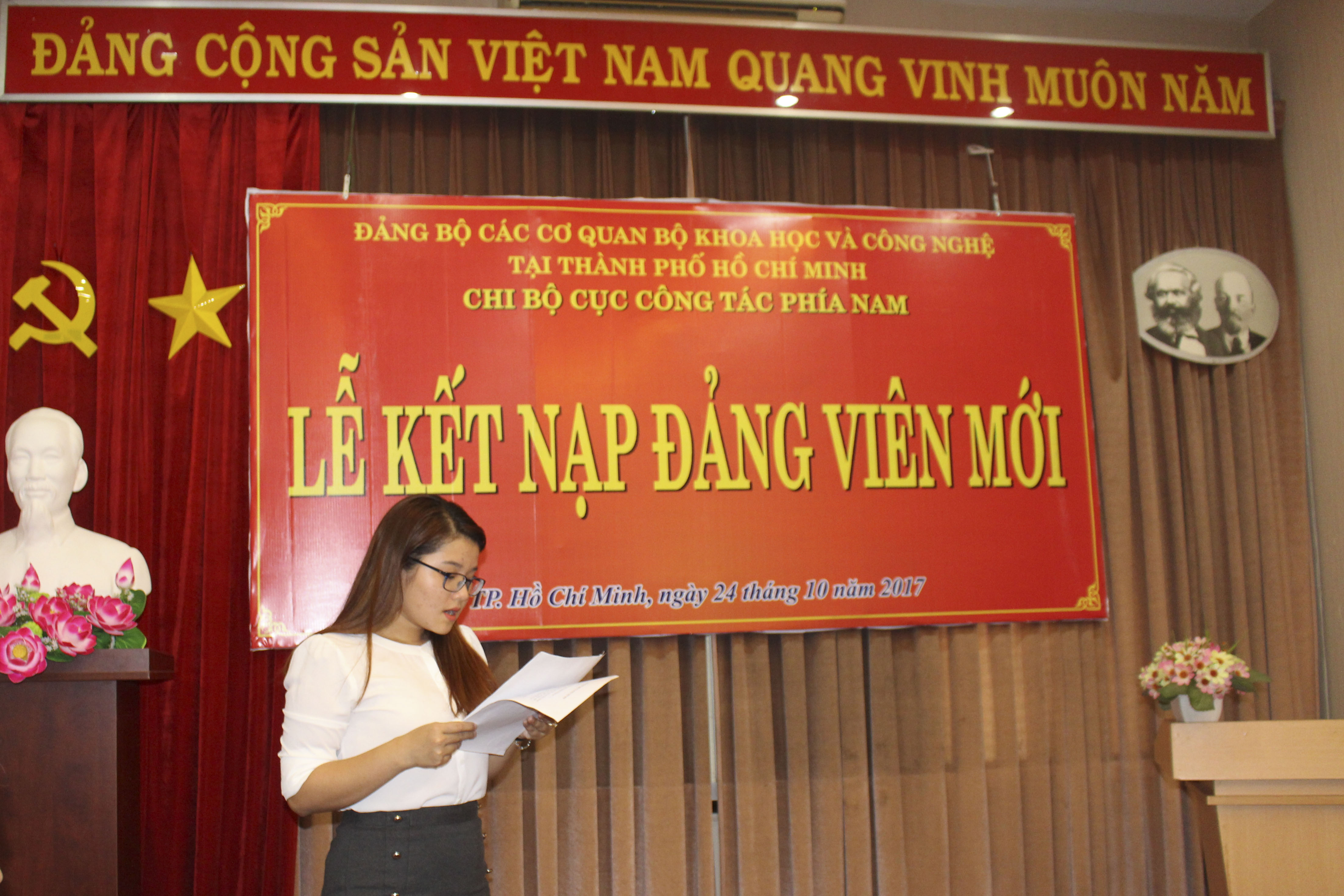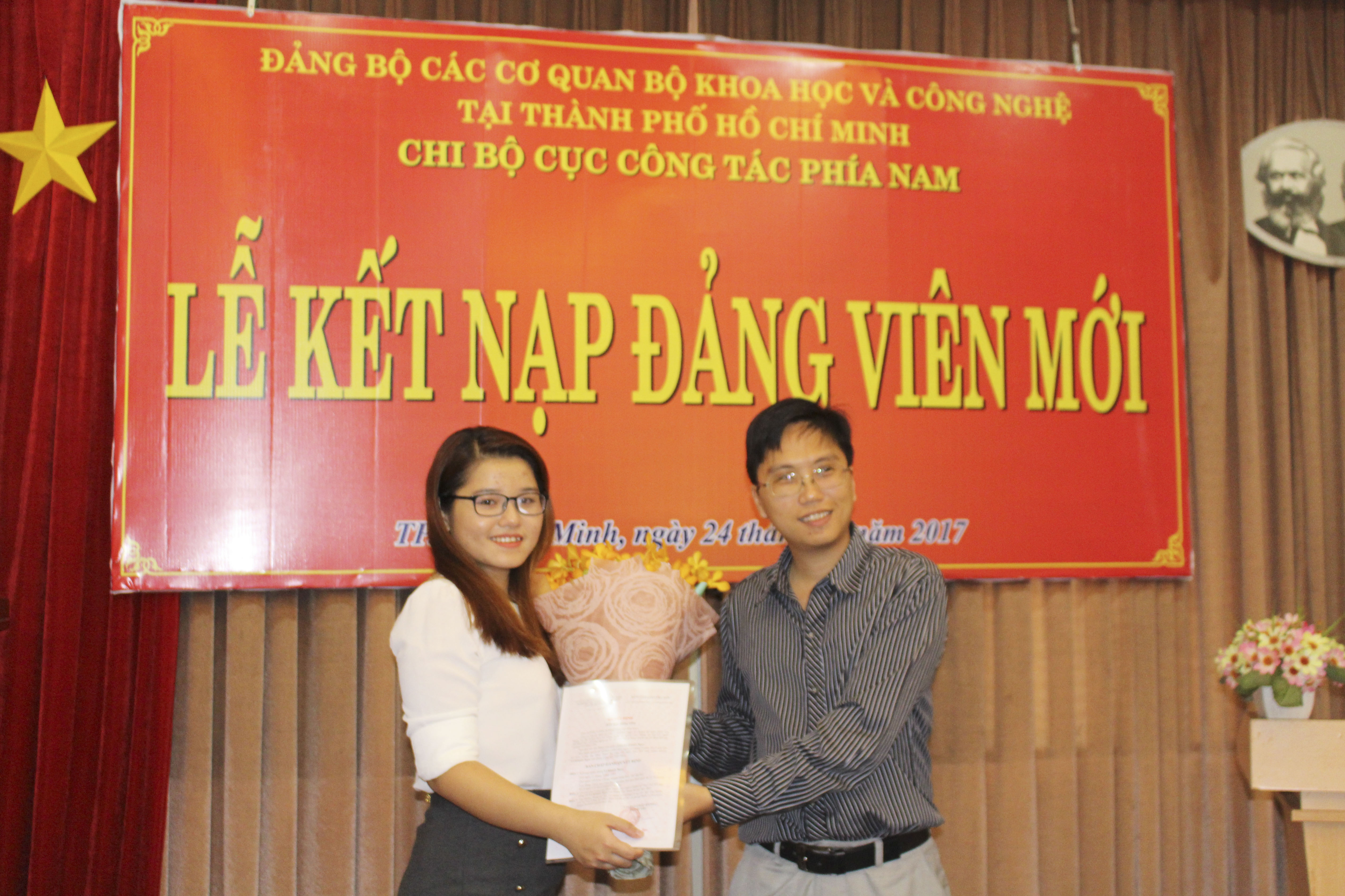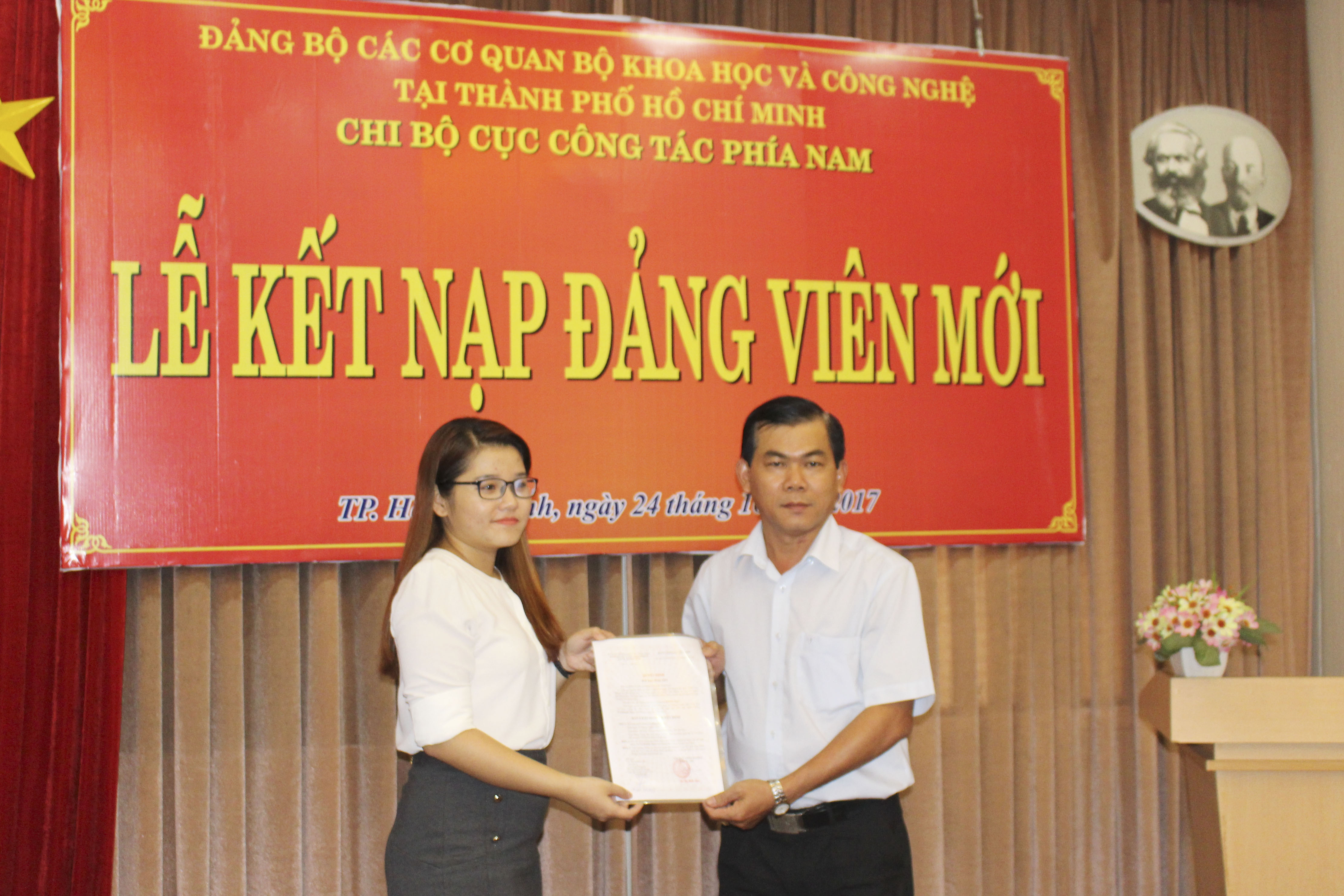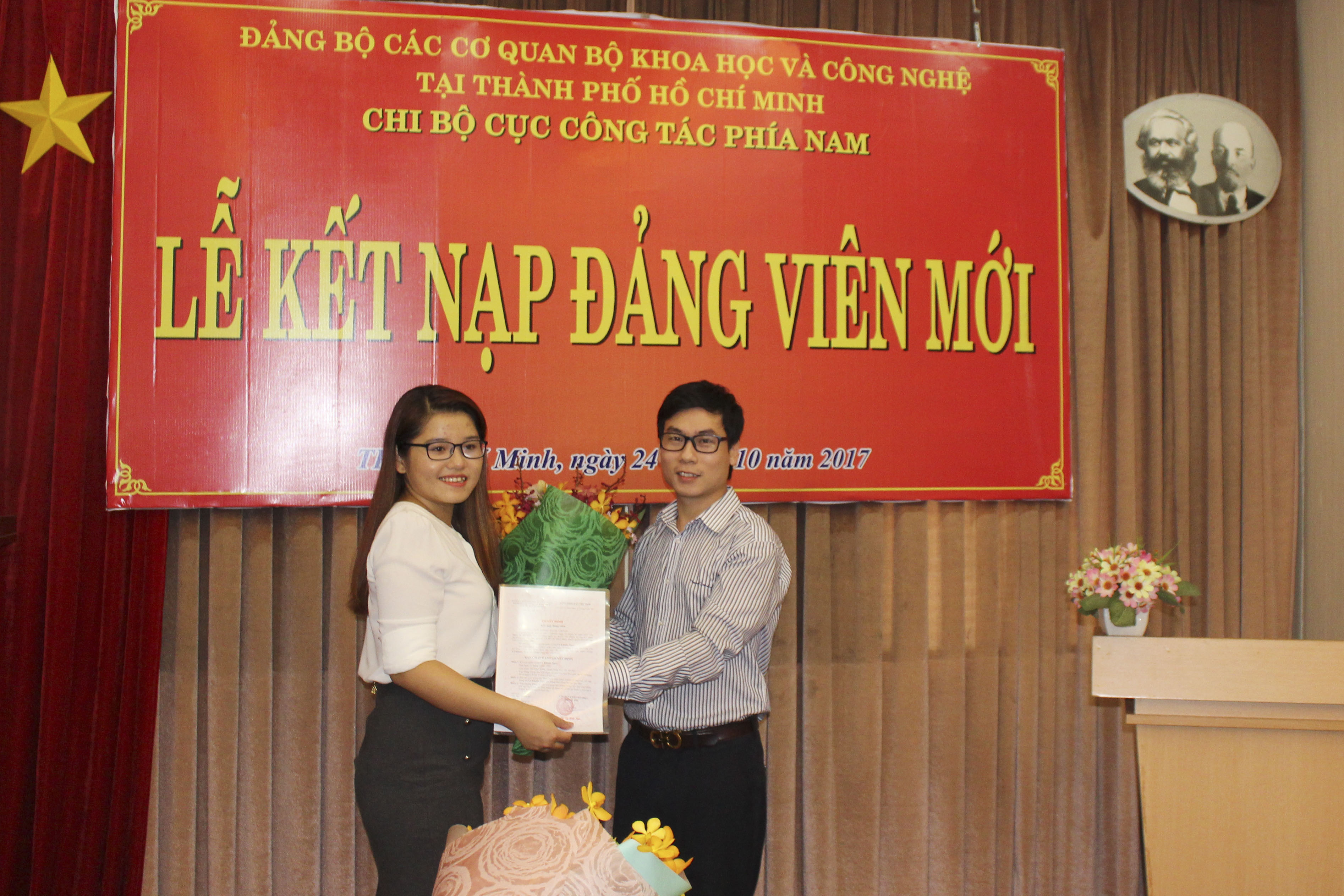 Ngày 24/10/2017 Chi bộ Cục Công tác phía Nam- Bộ Khoa học và Công nghệ đã tổ chức Lễ kết nạp đảng viên cho đồng chí Lê Khánh Ngọc thuộc Văn phòng đại diện Cục Sở hữu trí tuệ tại Tp.Hồ Chí Minh.